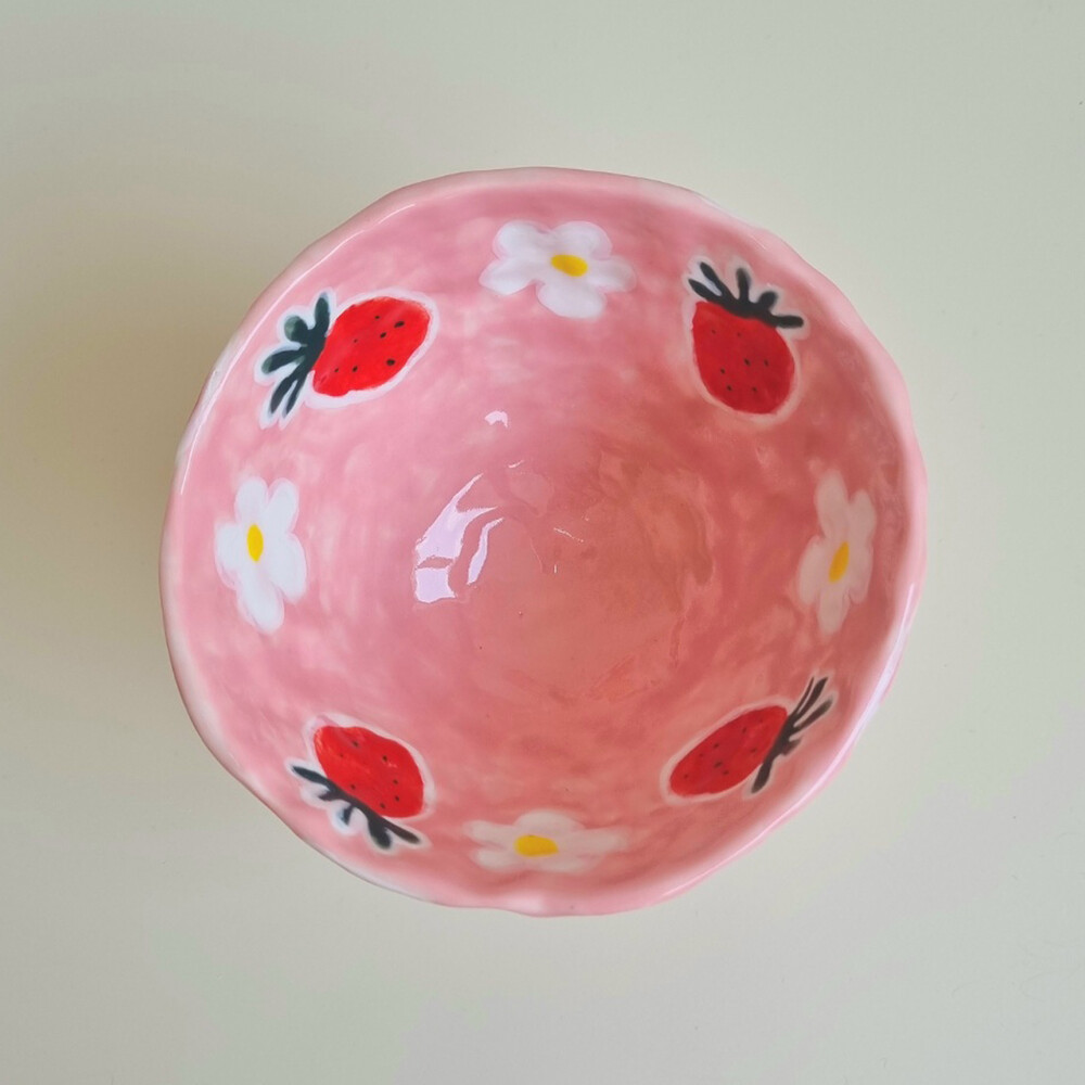 Pink strawberry daisy yogurt bowl