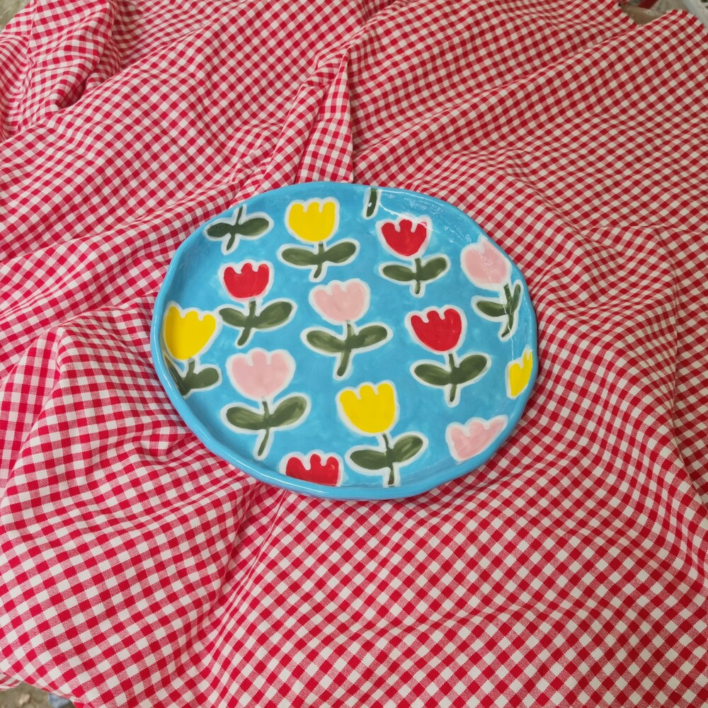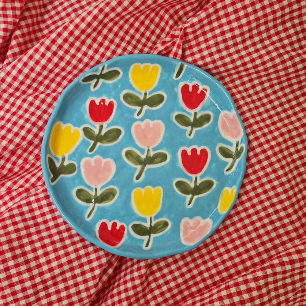 Blue tulip dinner plate