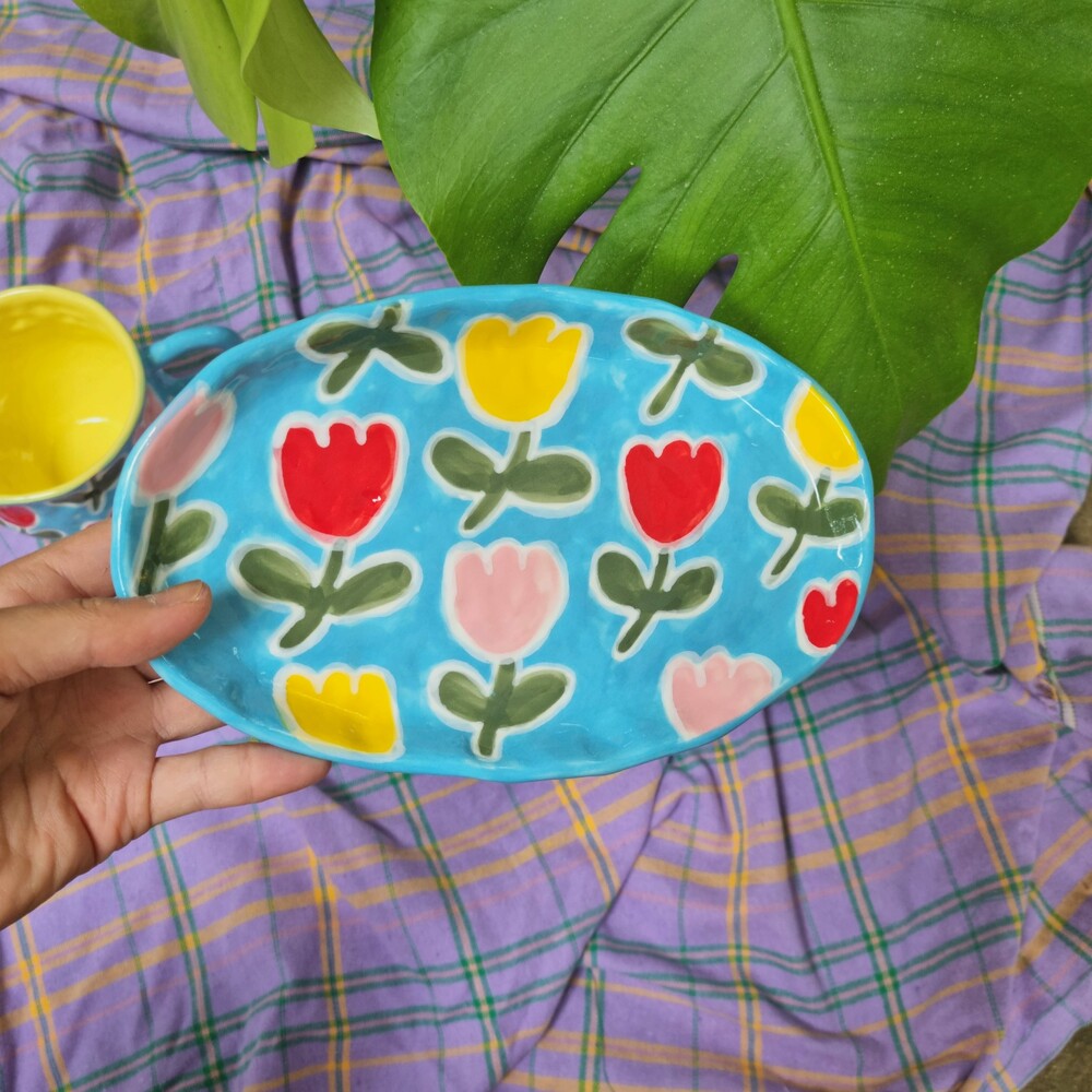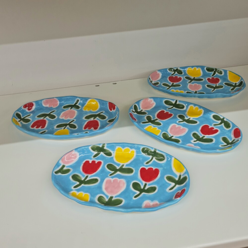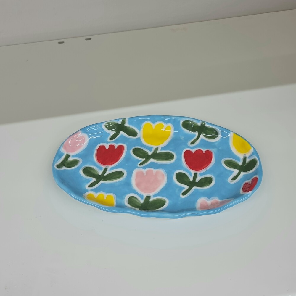 Blue Tulip Oval Plate