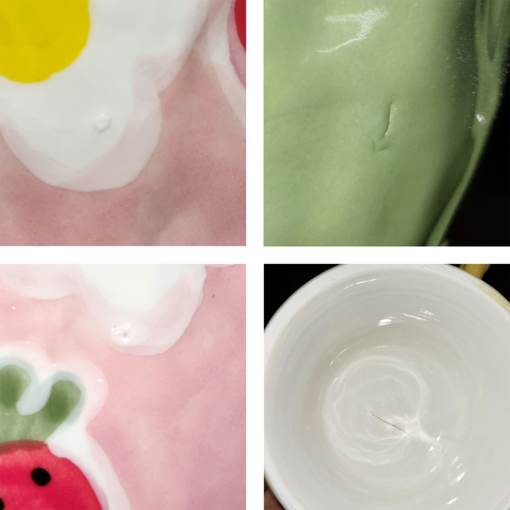 · 흙의 기포자국, 물감 두께로 인한 들뜸 또는 갈라짐,물감 뭉침현상,유약말림 자국,유약기포,유약크랙,반점,바닥의 미세한 갈라짐 등으로 인한 반품,교환은 어렵습니다.