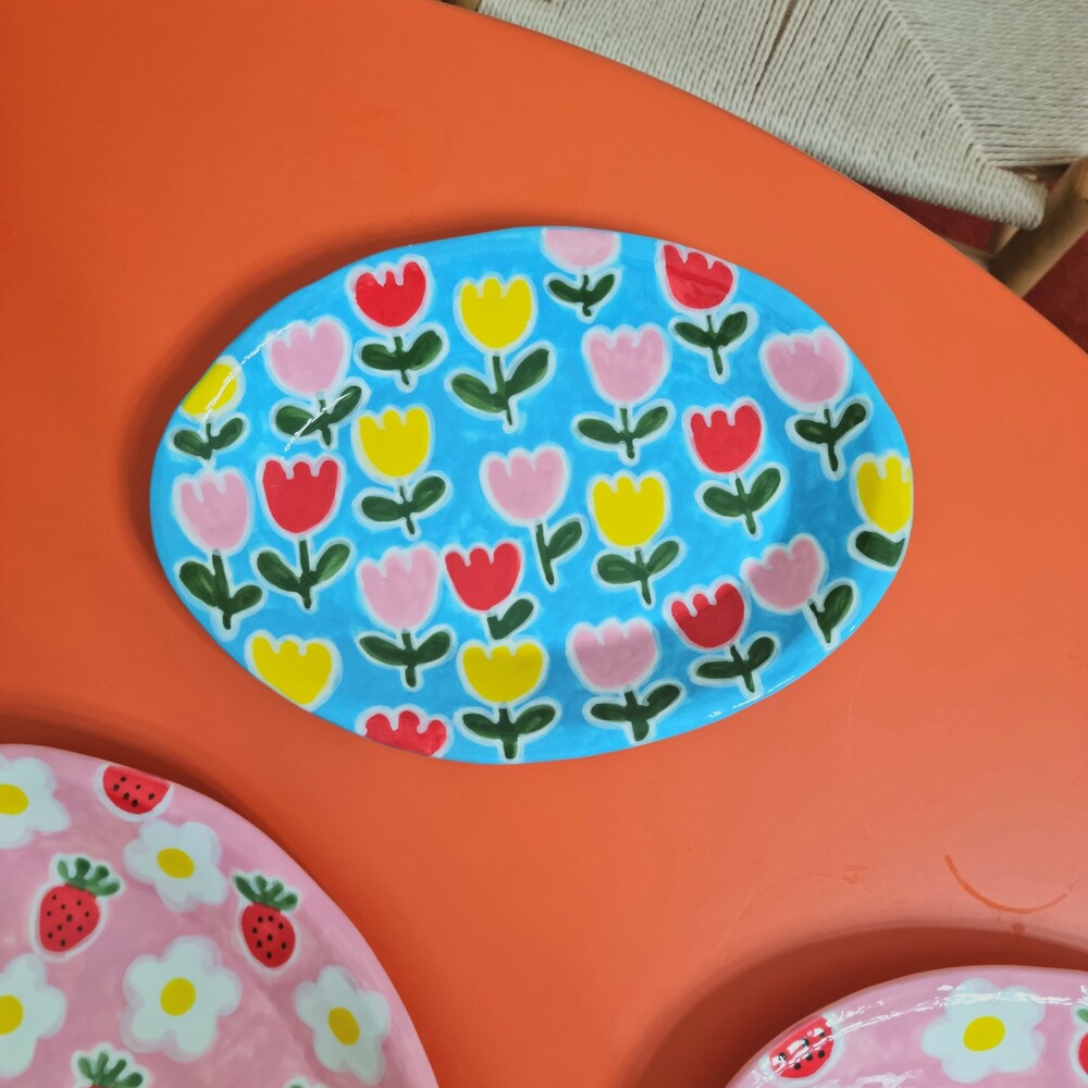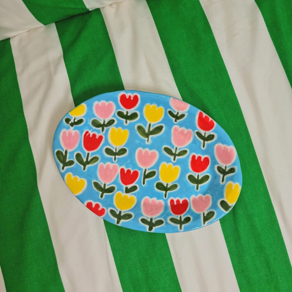 Blue Tulip big Oval Plate